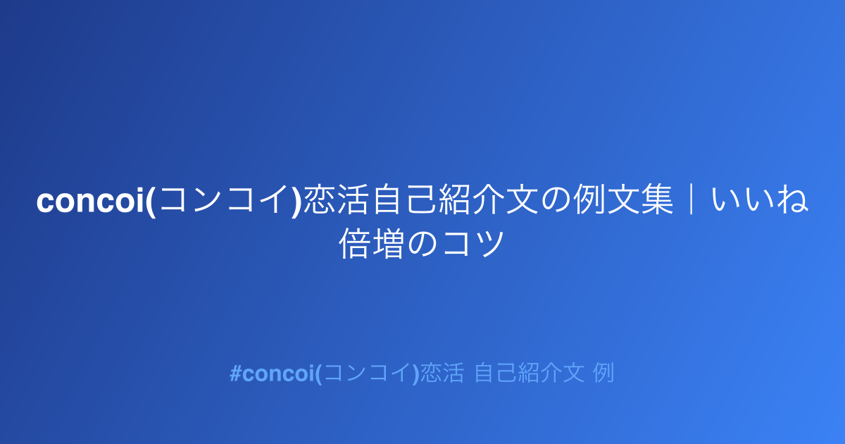 ✅ concoi(コンコイ)恋活 自己紹介文 例について、効果的な活用方法や成功のコツを解説します。